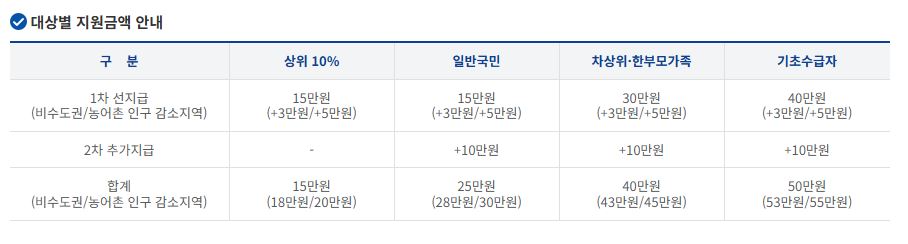- 비수도권 +3만원, 농어촌 감소지역 +5만원 추가
