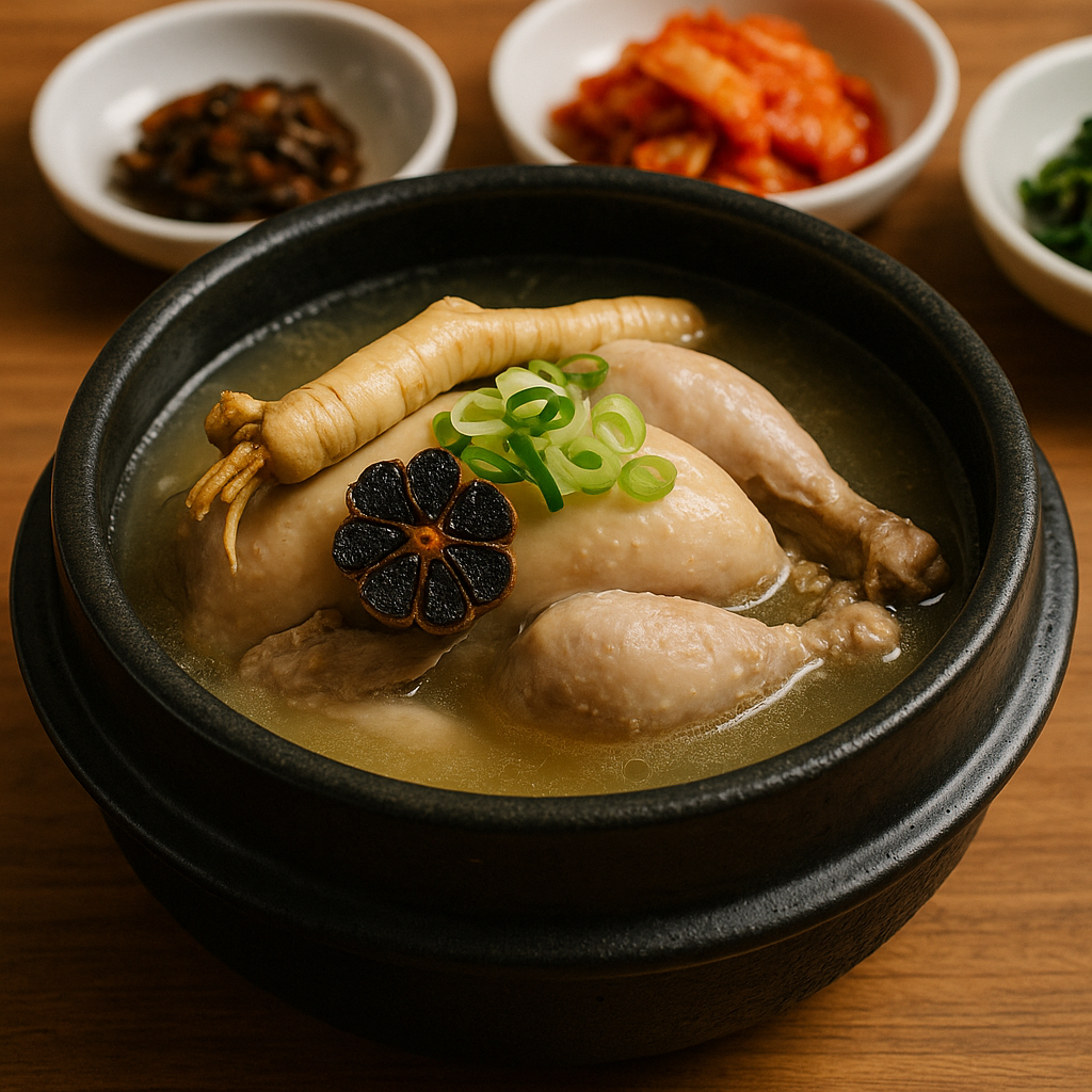 | 삼계탕 with 인삼 대신 흑마늘 | 항산화 효과 ↑ | 흑마늘은 소화 부담이 적어 시니어에게도 좋아요 |